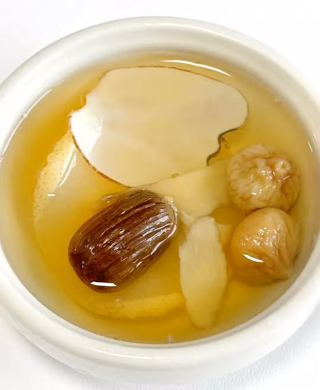 梨皮中的槲皮素抗炎護喉;海底椰胺基酸種類多達16種;百合黏液質形成保護膜;無花果天然酶分解喉嚨異物感。平時老咳嗽,心裡煩躁容易發脾氣,吃不下飯,嘴裡有異味,舌頭起泡,皮膚乾巴巴的,還便秘,那就快去煮這個茶吧!它喝起來甜甜的,大人小孩都喜歡。