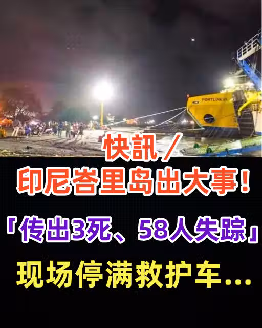 印尼知名度假勝地峇里島於7月2日深夜發生沉船意外,船上共載有65名乘客與船員,目前已知3人不幸罹難、58人下落不明,目前搜救行動仍在進行當中。