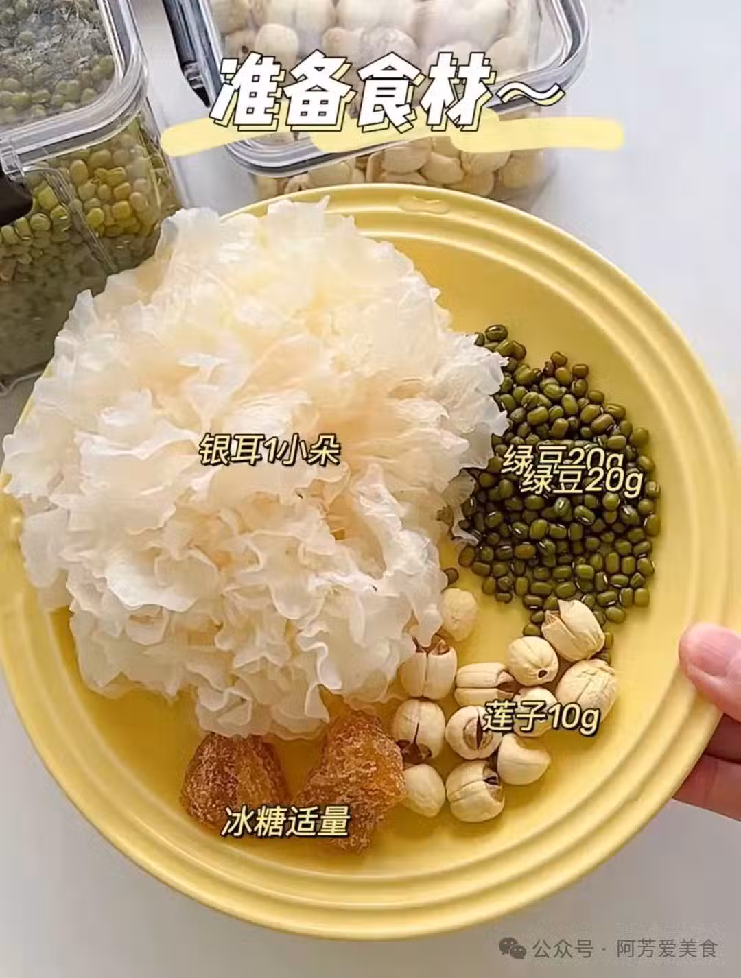 綠豆半碗、干銀耳1小塊、冰糖5顆