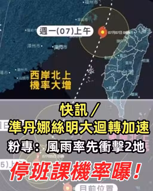 快訊/准丹娜絲明大迴轉加速! 粉專:風雨率先衝擊2地,停班課機率曝...