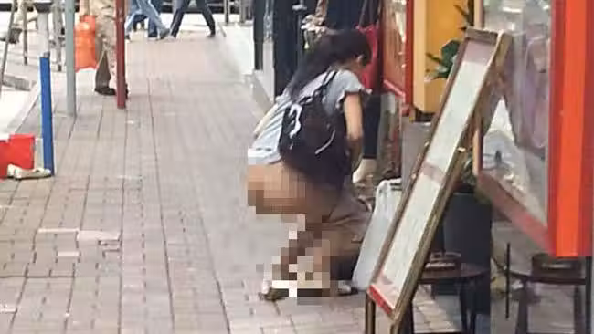 馬尾妹當街脫褲大便!渾圓屁股任人看 拉完閃人留一地黃金超沒水準