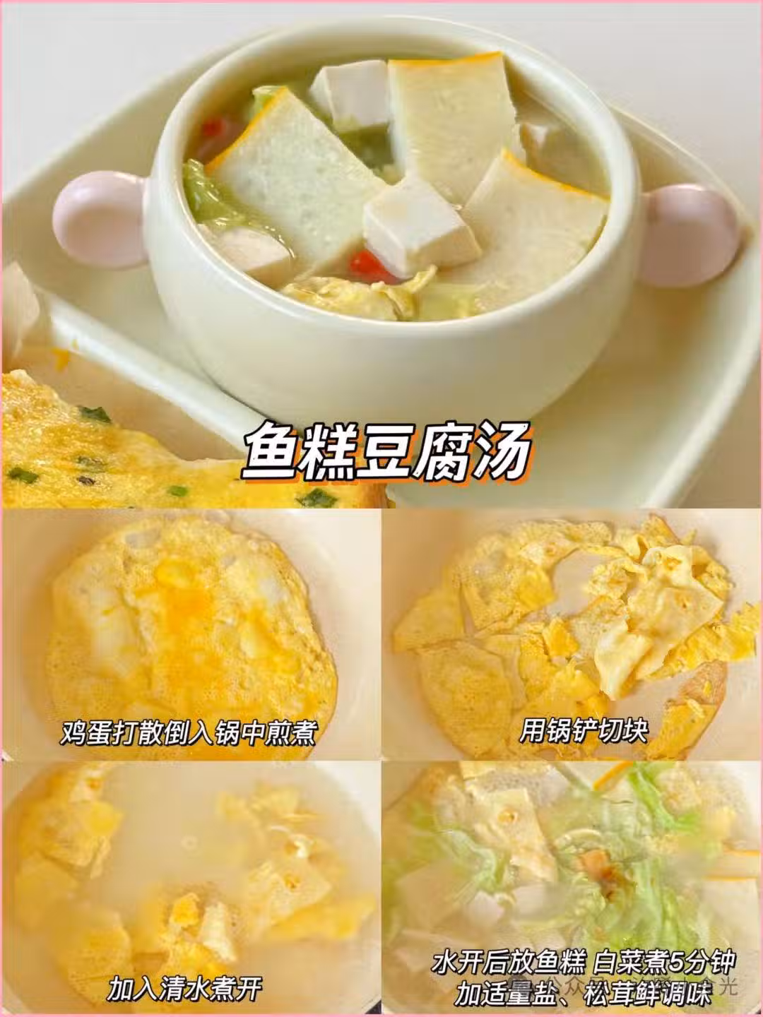 食材:雞蛋、魚糕、豆腐、白菜、清水