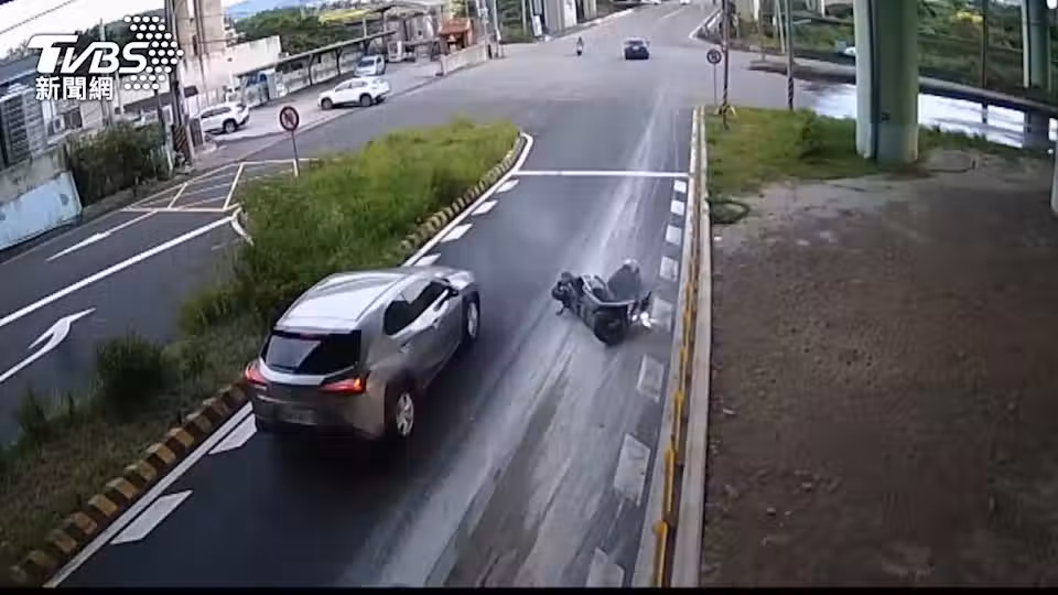 砂石車泥漿染路面!三義火炎山「2騎士慘摔」監視器全錄下