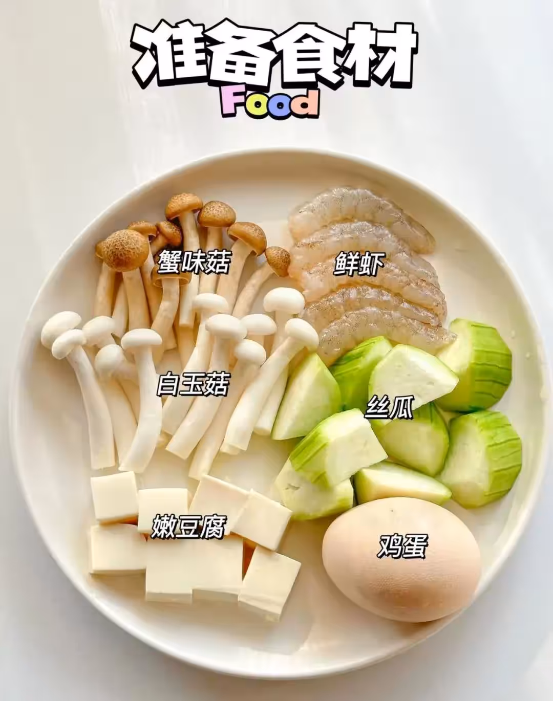絲瓜|鮮蝦|蟹味菇|白玉菇|雞蛋|豆腐