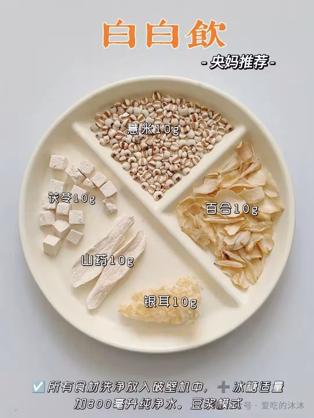 所有食材提前泡2小時、銀耳泡軟,放入破壁機加800ml水,選豆漿模式既可。