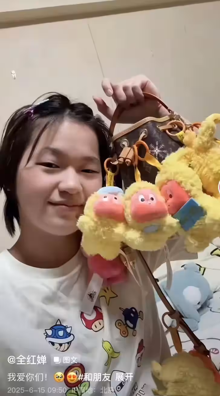 全紅嬋又開心了!帶妹妹游北京買一堆毛絨寵物,曬新美甲手指很細