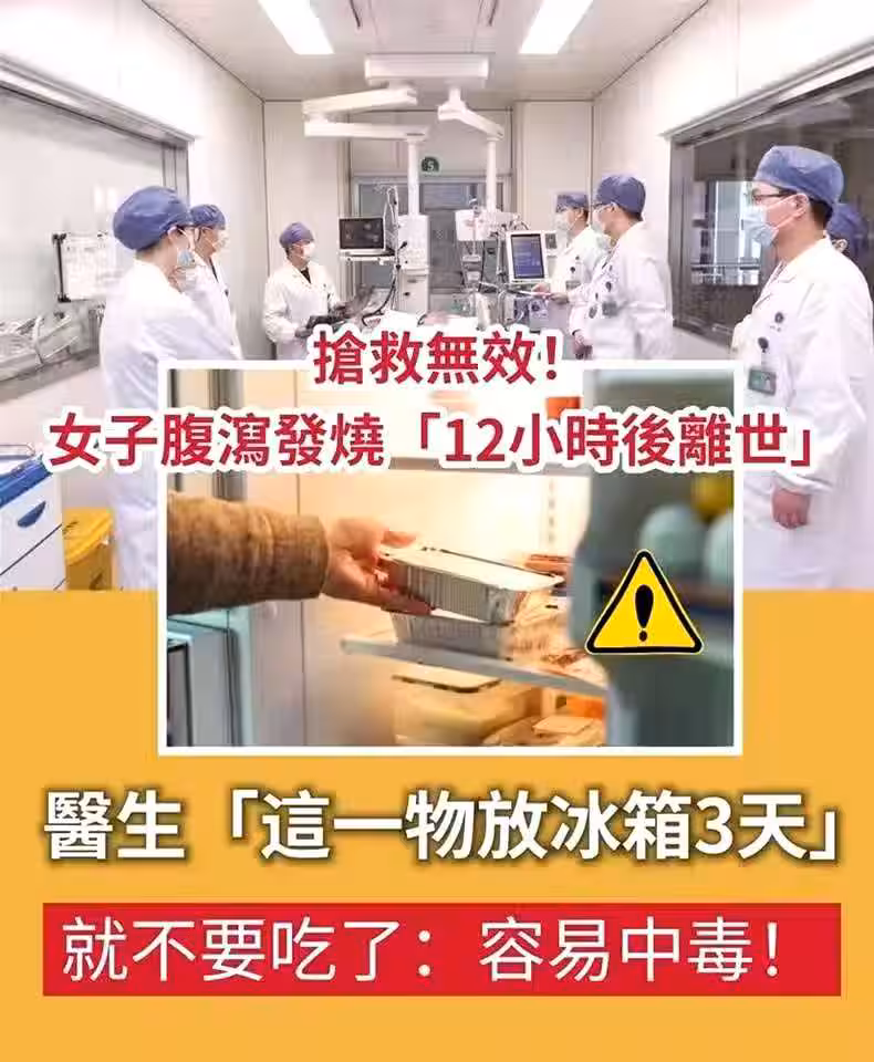 搶救無效!女子腹瀉發燒「 12小時後離世 」, 醫生「 這一物放冰箱3天 」就不要吃了:很容易中毒