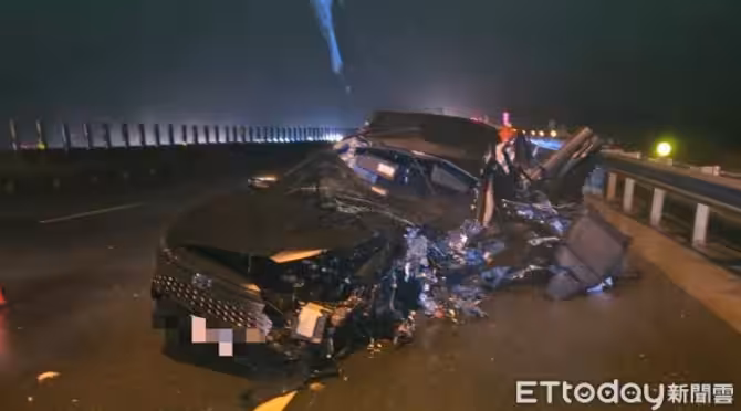 根據現場畫面,事故現場相當慘烈,肇事車輛已經嚴重變形,幾乎要斷成兩截,完全成為一堆廢鐵。