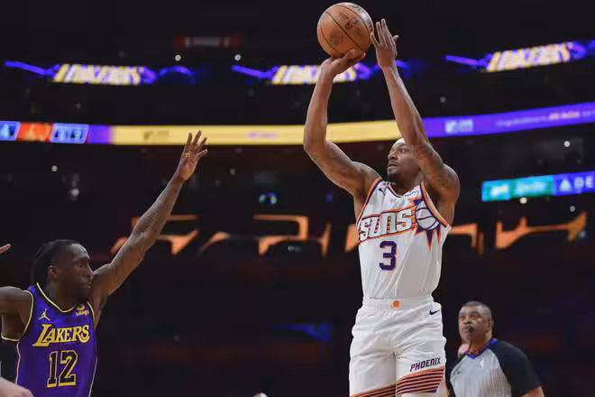 只要來到湖人,比爾可以和東契奇組成超級後場,這和比爾/布克的組合不同,東契奇有著頂級的組織能力,而比爾也在太陽展現出了防守意願和無球能力,他們之間的組合不會有問題。再加上詹姆斯距離退役確實不遠了,不僅下賽季比爾可以在湖人有爭冠機會,而且他有可能明年底就成為湖人的二當家,身份一下子反轉。再說說湖人,一旦拿下比爾,他們可以組成東契奇、比爾、詹姆斯、八村塁、艾頓的五人組,里夫斯可以回到替補席,繼續發揮他的能力。並且2號位有了比爾,里夫斯甚至可以用做交易,或者乾脆把八村塁拿去交易維金斯,補強鋒線防守。