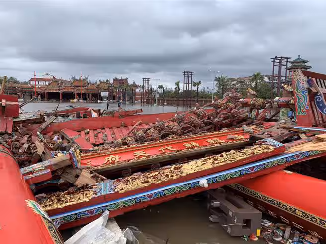 據南鯤鯓代天府廟方透露,入口的牌樓已有40年歷史,當時請來國寶級大師王錦木操刀打造,用了12根千年檜木支撐,在當年1根就價值400、500萬元,現在市值早已飆升數倍,達到2000、3000萬元的天價,由於牌樓是以古老工法建造,基座很淺,這次不敵丹娜絲颱風倒塌,損失難以估計。