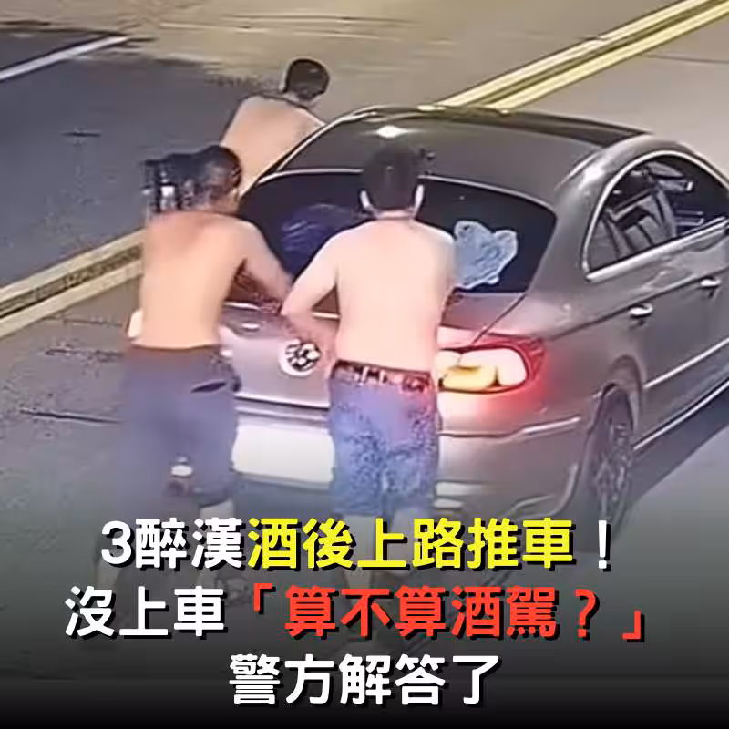 近日出現有趣一幕,3名飲酒男子為避免酒駕,竟然合力推著小轎車前進約500米返家。
