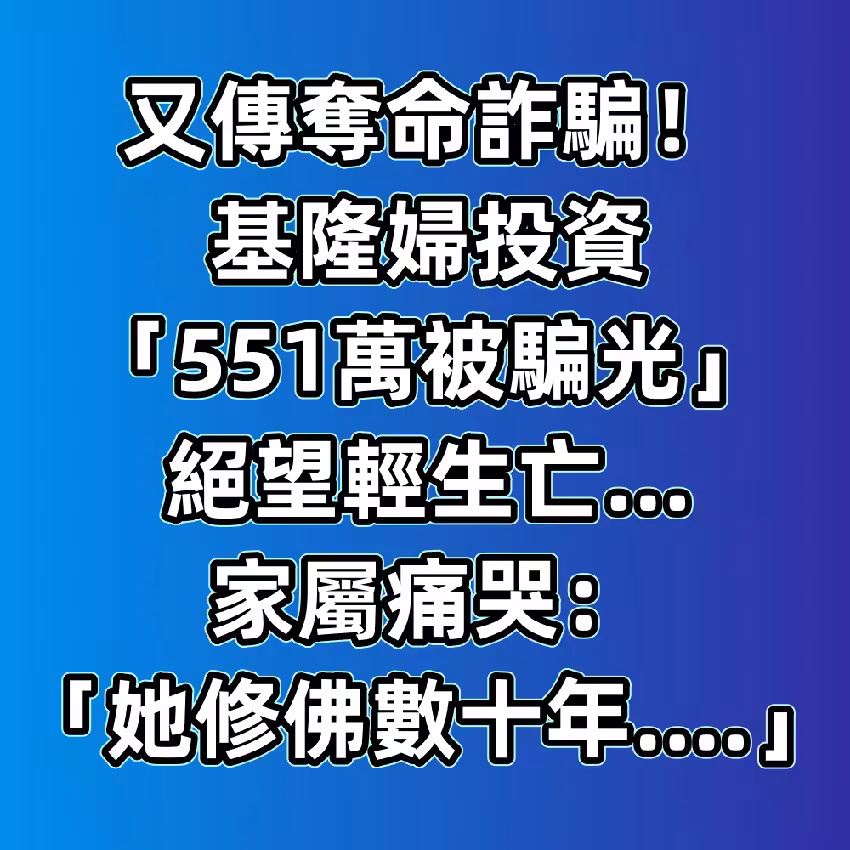 又傳奪命詐騙!基隆婦投資「551萬被騙光」絕望輕生亡...家屬痛哭:「她修佛數十年....」