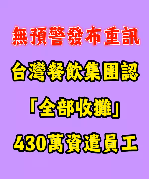 無預警發布重訊!台灣餐飲集團認「全部收攤」430萬資遣員工!