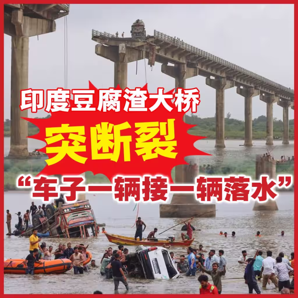 印度豆腐渣大橋突斷裂 「車子一輛接一輛落水」