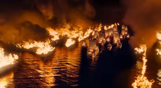 諸葛亮在背後調度,一點不慌,指揮士兵扎草船、備松油,一切都安排得井井有條。最後那場火一起,熊熊大煙把天都燒紅了,曹操的艦隊成了一鍋爛粥。