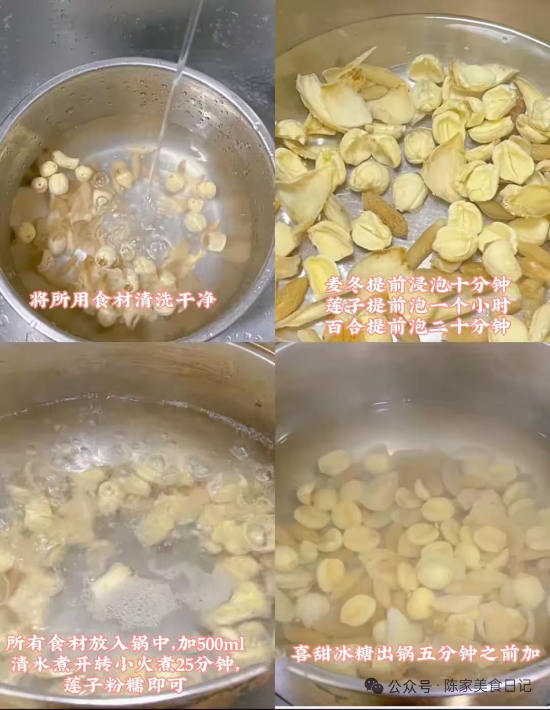 百合選無硫的顏色偏米白,煮出來更清香;脾胃特別怕冷的人,喝之前熱一熱,別喝冰的。