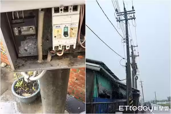 ▲大家事前已關閉總電源才入場勘查,未料卻又發生漏電,一旁的高壓電桿疑似是元兇。(圖/嘉義縣養豬協會理事長林志達提供) ………………………………