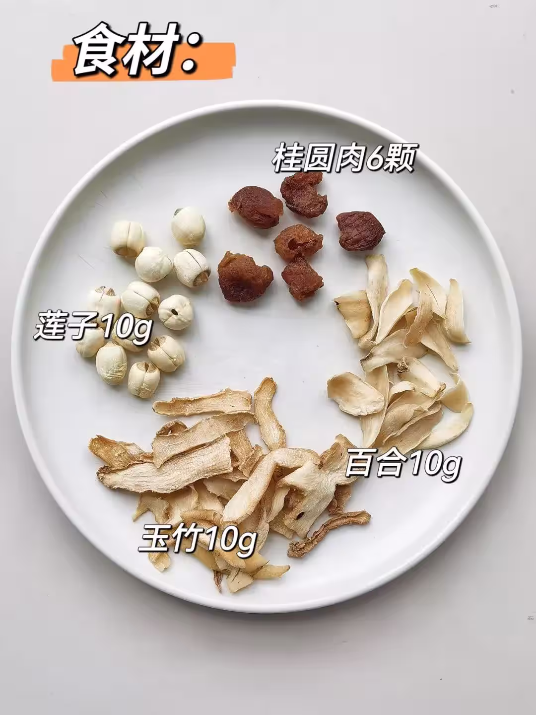 桂圓肉6顆|百合10g|蓮子10g|玉竹10g