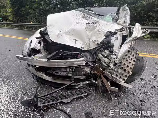 快訊/北宜公路嚴重車禍!特斯拉「攔腰撞貨車全毀」