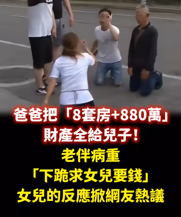 爸爸把「8套房+880萬」財產全給兒子! 老伴病重「下跪求女兒要錢」女兒的反應掀網友熱議