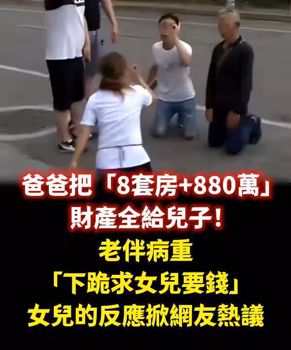 爸爸把「8套房+880萬」財產全給兒子! 老伴病重「下跪求女兒要錢...」女兒的反應掀網友熱議
