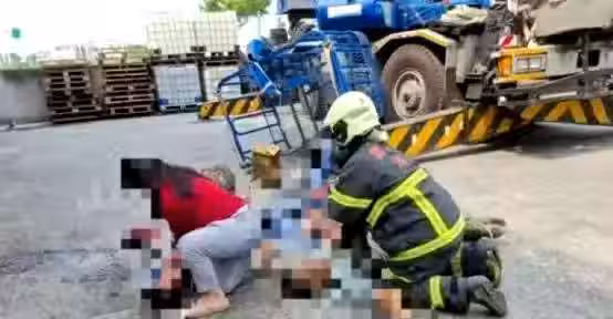 當時吊車準備要將4名工人送上去,執行高空弔掛作業,沒想到吊臂突然斷裂,在吊車上的4名工人被重摔,傷勢嚴重。