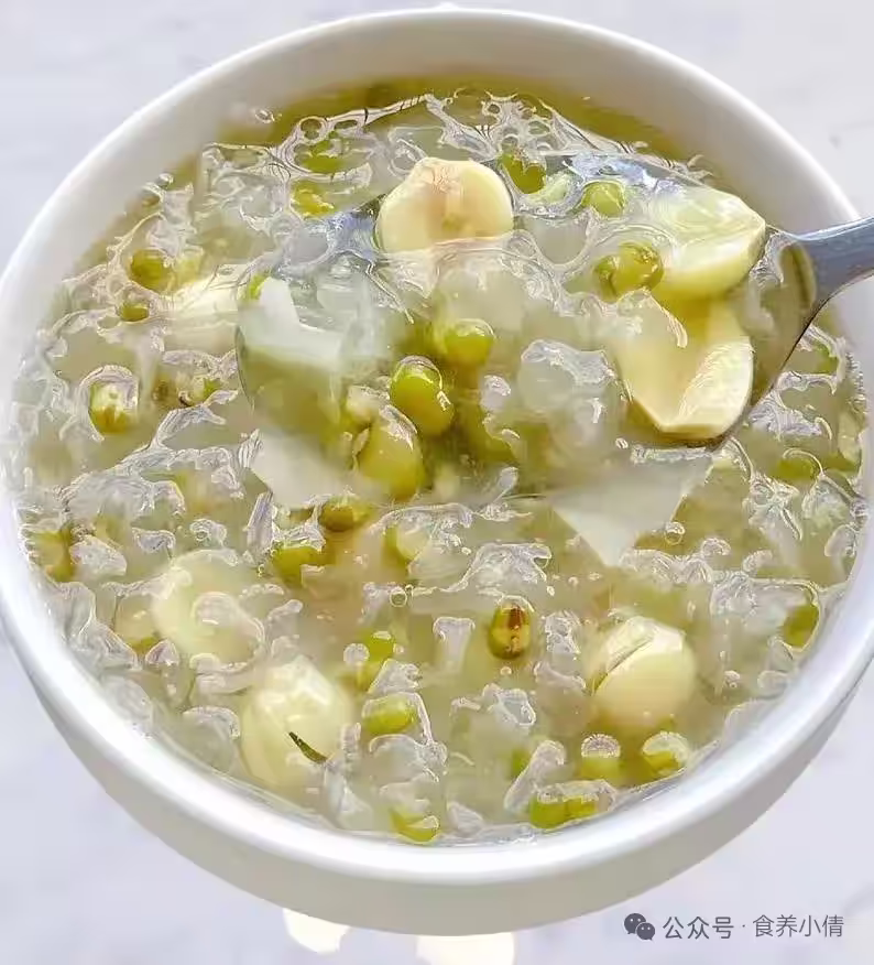 食材: 銀耳半朵、綠豆30克、薏米20克、新鮮薄荷葉幾片(可選)。