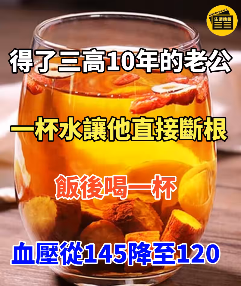 得了三高10年的老公!一杯水讓他直接斷根!飯後喝一杯,血壓從145降至120,還能降血糖和通血管!男女都管用!