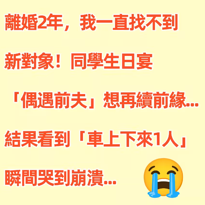 離婚2年,我一直找不到新對象!同學生日宴「偶遇前夫」想再續前緣...結果看到「車上下來1人」瞬間哭到崩潰