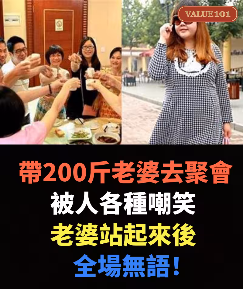 帶200斤的老婆去聚會,被人各種嘲笑,老婆站起來後全場無語