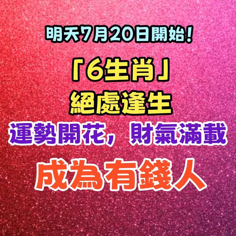 明天7月20日開始「6生肖」絕處逢生,運勢開花,財氣滿載,成為有錢人