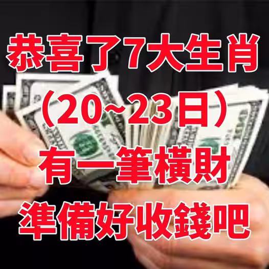 恭喜了7大生肖,在未來三天( 11月20~23日)即將有一筆橫財,準備好收錢吧