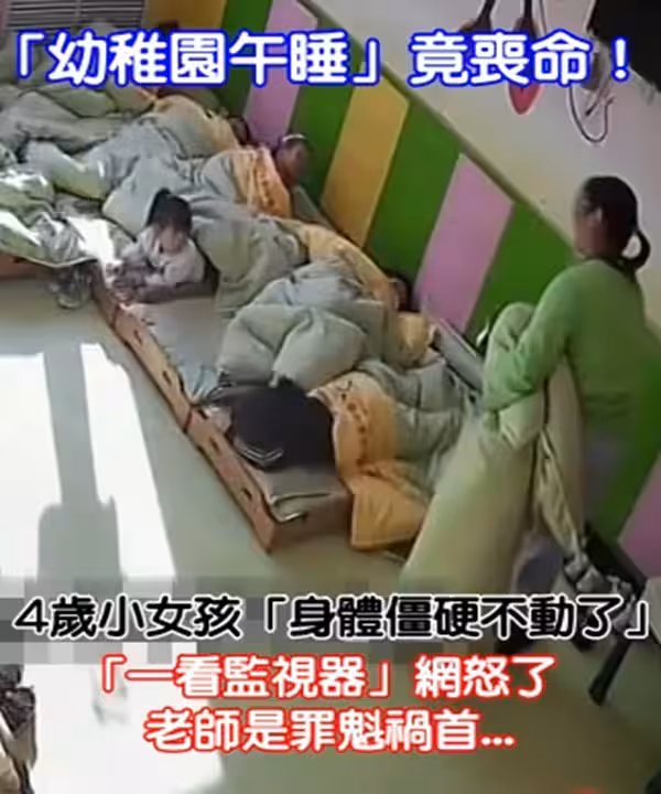 「幼稚園午睡」竟喪命! 四歲小女孩「身體僵硬不動了」 「一看監視器」網怒:老師是罪魁禍首
