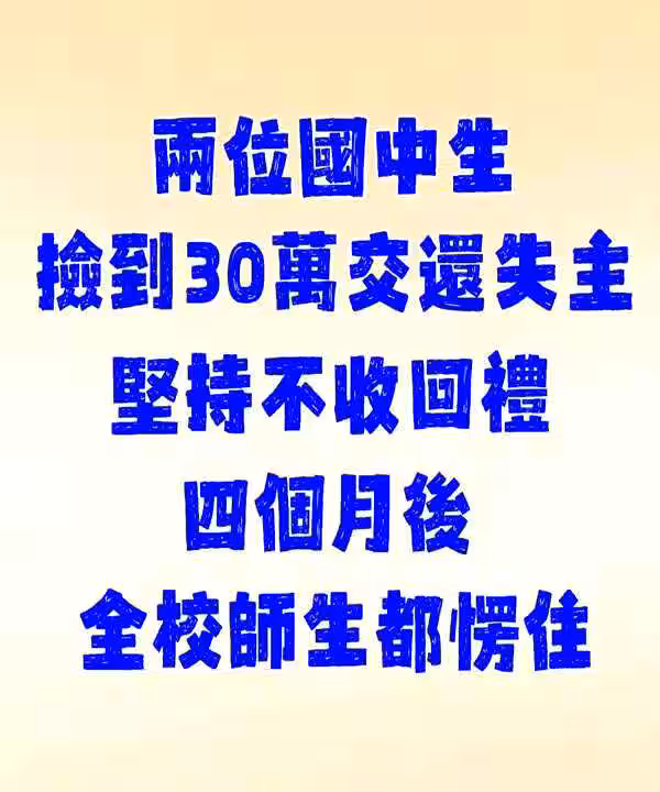 國中生「撿到30萬交還失主」堅持不收回禮!!4個月後全校師生都愣住