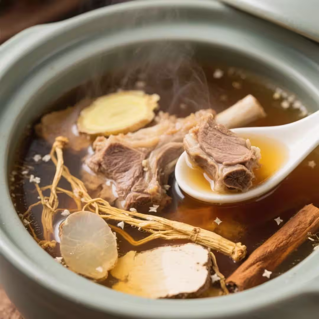 2. 燉煮:砂鍋中加清水,放入羊肉、藥材、薑片、黃酒,大火煮沸後撇去浮沫,轉小火慢燉2小時。