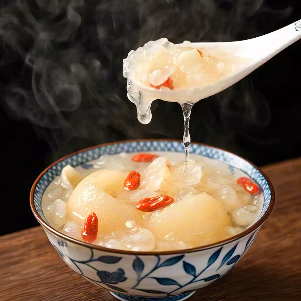 【功效】百合潤肺止咳、清心安神,銀耳滋陰潤燥,雪梨生津止渴、潤肺化痰,這道甜品性質平和,能滋陰潤燥、補虛損,適合陰虛體質(容易口乾舌燥、手腳心熱、乾咳)的人,補而不燥。