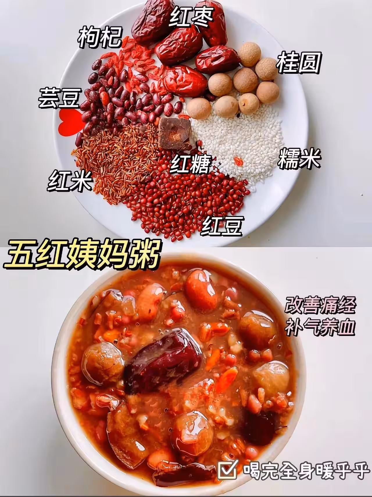 💫食材:紅豆+紅米+紅棗+紅糖+桂圓+枸杞+糯米
