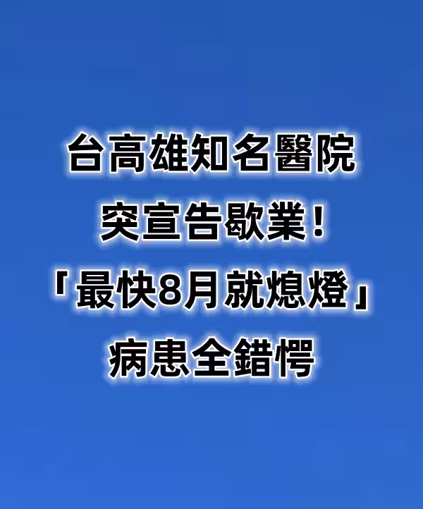 突發/台高雄知名醫院突宣告歇業!「最快8月就熄燈」病患全錯愕