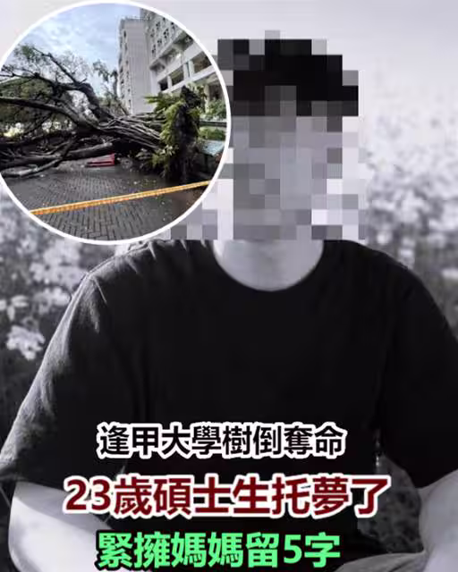 逢甲大學樹倒奪命!23歲碩士生託夢了,緊擁媽媽留5字