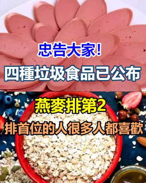忠告大家!四種「垃圾食品…」已公布,燕麥排第2,排首位的人很多人都喜歡