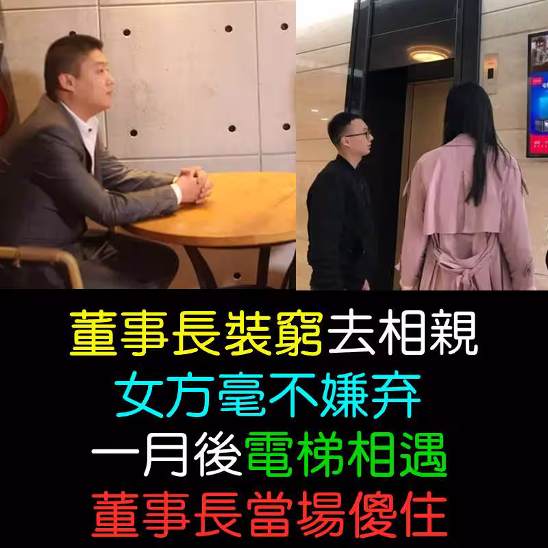 董事長裝窮去相親,女方毫不嫌棄,一月後電梯相遇,董事長當場傻住!