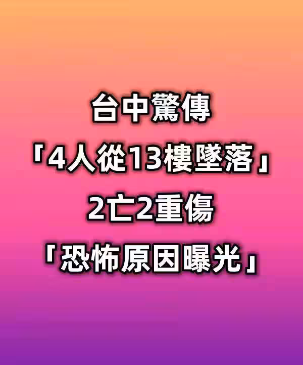 突發/台中驚傳「4人從13樓墜落」!2亡2重傷「恐怖原因曝光!」