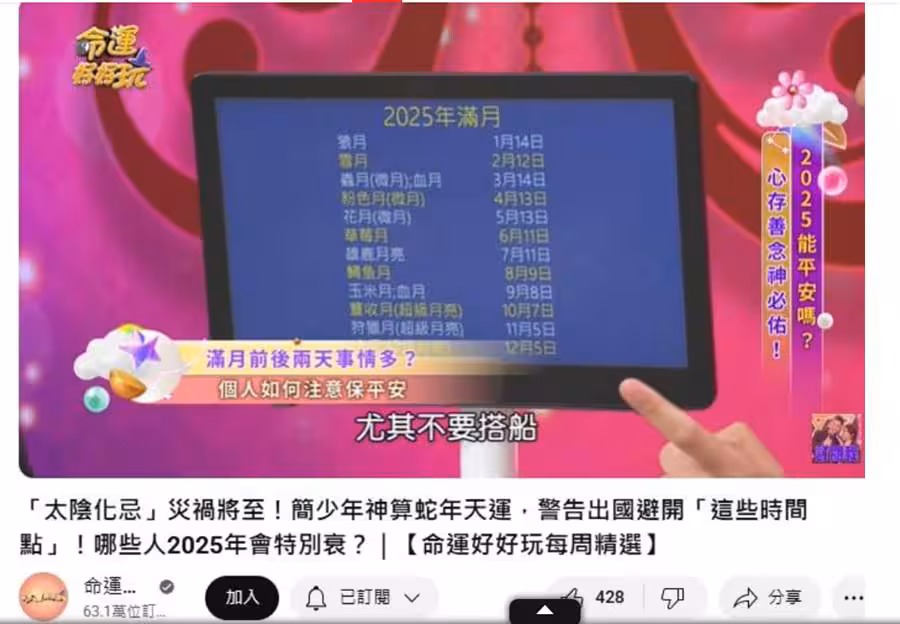 簡少年說,去年災難是與「太陽」有關,而今年「太陰化忌」則是「月亮」出問題,尤其今年發生2次血月,月亮引力影響到潮汐及海底變動,像是海底火山、海底地殼等,代表今年海裡面變化大,「7月份可能真的是兩個的交界,磁暴加地殼影響,引發同時間震動」,但推估不會誇張到陸地相連,海水乾枯程度。