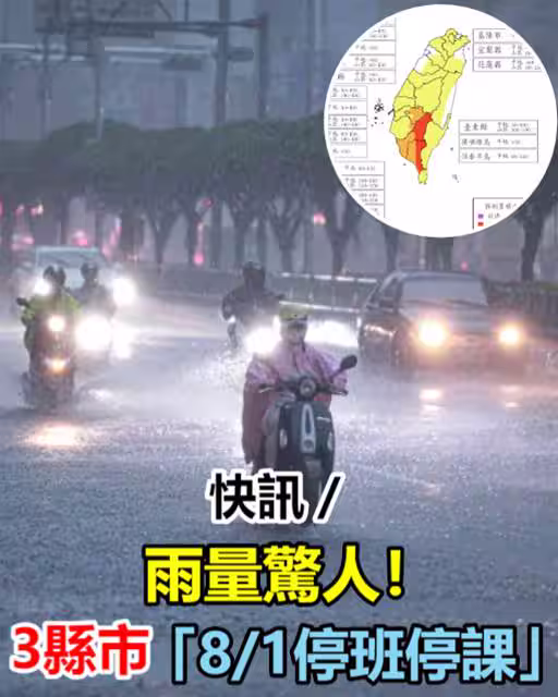 快訊/雨量驚人! 3縣市「8/1停班停課」已達標