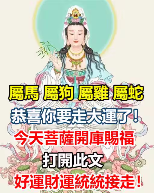 【屬馬女 屬狗女 屬雞女 屬蛇女】恭喜你要走大運了!今天菩薩開庫賜福,打開此文好運財運統統接走!