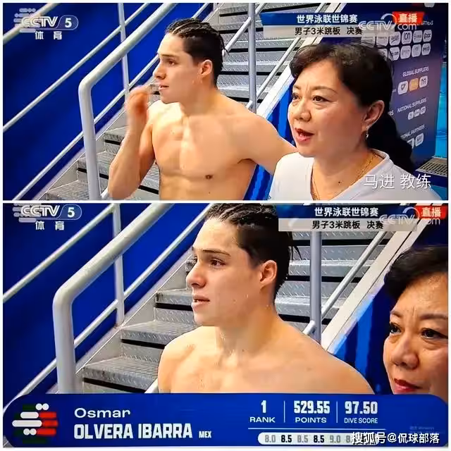 值得一提的是,站在奧斯馬爾身邊的教練員馬進,現任墨西哥國家隊跳水教練,也是中國援助墨西哥教練團團長,現場帶領弟子爆冷奪冠,也是眼眶含淚。