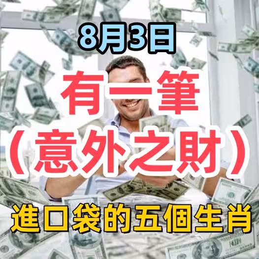 8月3日開始有一筆意外之財進口袋,恭喜五個生肖鈔票滾滾來!