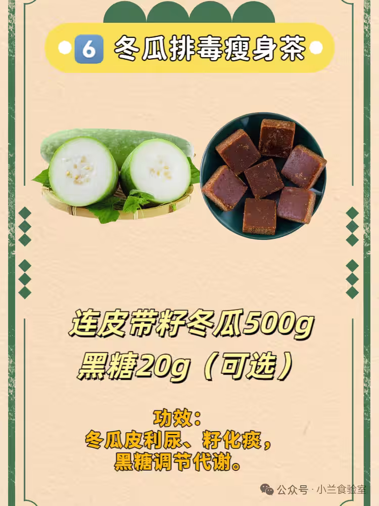 功效:冬瓜皮利尿、籽化痰,黑糖調節代謝。台灣百年古方,喝出「透明肌」+小蠻腰!