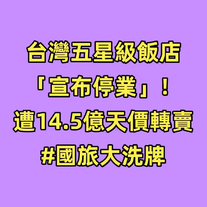 台灣五星級飯店「宣布停業」!遭14.5億天價轉賣... #國旅大洗牌