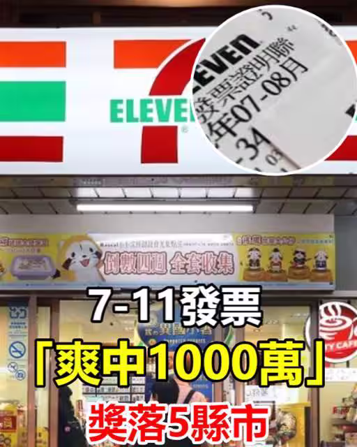 7-11發票「爽中1000萬」! 獎落5縣市,才花65元拿獎!